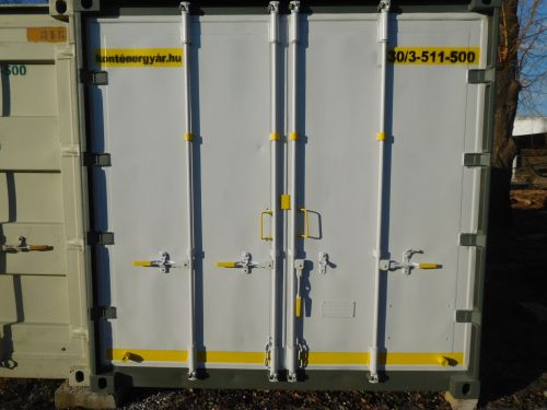 25-ös sorszám: Vízes konténerek, melyek könnyen javíthatók, de ha a válaszfalakat kicsavarozzák, akkor hőszigetelt 20 lábas konténereket kapunk normál ajtómérettel és ablakkal. ekkor már könnyen használható öltözőnek, lakásnak, akár irodának is, vagy hőszigetelt raktárként, műhelyként. Áruk nagyon kedvező, épp azért, mert van vele kevés munka a belső kialakításával, vevő igénye szerinti átalakításhoz.