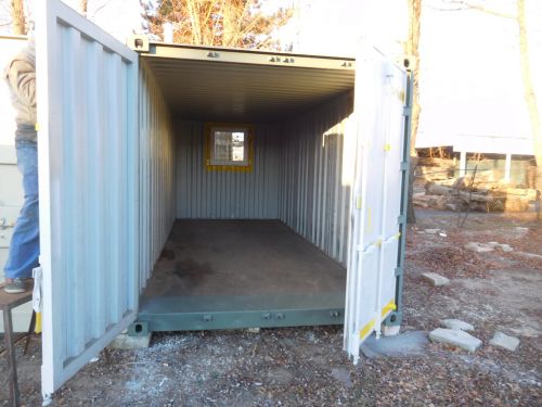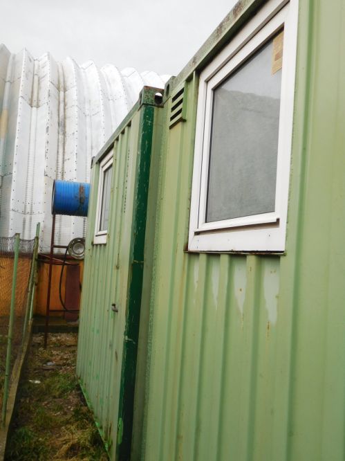 Irodakonténer. Az ajtó az egyik hoszú oldalán volt, ezt helyeztük át, alakítottuk ki helyét a rövid oldalon. Na, itt akadtunk el, idő hiányában. Elő is vesezm, de a baloldali hosszú oldalára teszek még egy ablakot, akár kétszobás is lehet belőle. Ki hogy akarja. És Te??