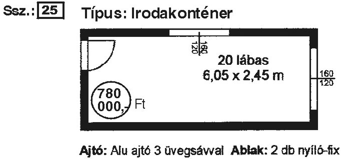 Árúsítok 20 lábas iroda-lakó konténer vázszerkezetet is. A felső keret + alsó keret. Jár hozzá természetesen 4 oszlop is a sarkaira. Eladó tehát egy alapkeret, 4 oszlop és egy felső keret. Általában összeheggesztés nélkül kérik, mármint a két keretet készen adom, de a 4 oszlopot csak a vevő teszi a helyére - mert akkor könyebb dolgozni az alapkerettel és felső kerettel, magyarán lehet burkolni alúl felül és szigetelni, utána kell, lehet a 4 oszlopot helyére tenni, heggesztéssel. Így 580,000 ft netto. Könnyebb szállítani, bánni vele. De lehet kérni készre heggesztve, akkor 640,000 Ft nettó a teljes váz. Értsd!!! Burkolások nélkül, az már a vevő elképzelse szerint van.
